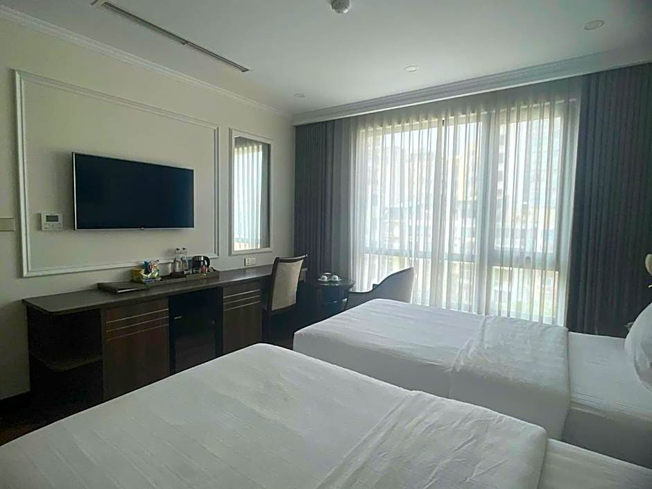 Featuring free toiletries and bathrobes, this twin room includes a private bathroom with a walk-in shower, a bath and a hairdryer. The spacious air-conditioned twin room features a flat-screen TV with cable channels, soundproof walls, a mini-bar, a wardrobe as well as city views. The unit has 2 beds.